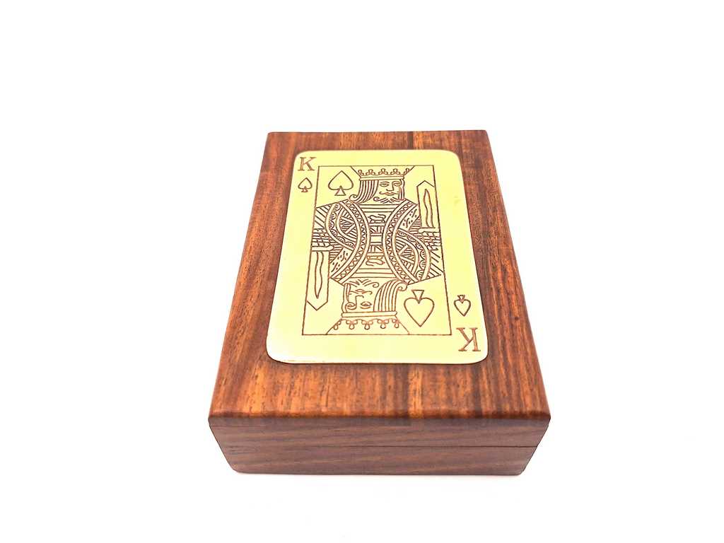 A deck of cards in a decorative wooden box is the perfect combination of classic entertainment and stylish design. The wooden box, decorated with an aluminum badge with an image of the king, ensures safe storage of the deck even when traveling. It's a tasteful setting for your favorite card games, which will be perfect as an elegant addition to any interior.