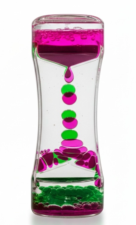 Průhledné pouzdro umožňuje plně sledovat plynulý proces stékání gelu, který má uklidňující účinek na oči a pomáhá odpoutat mysl od každodenního napětí. Přesýpací hodiny jsou ideální jako dekorace na pracovní stůl, součást relaxační zóny, antistresová pomůcka v práci, ve škole nebo v kanceláři.