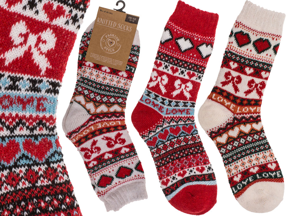 - Hřejivé pletené ponožky s motivem srdce a nápisem LOVE