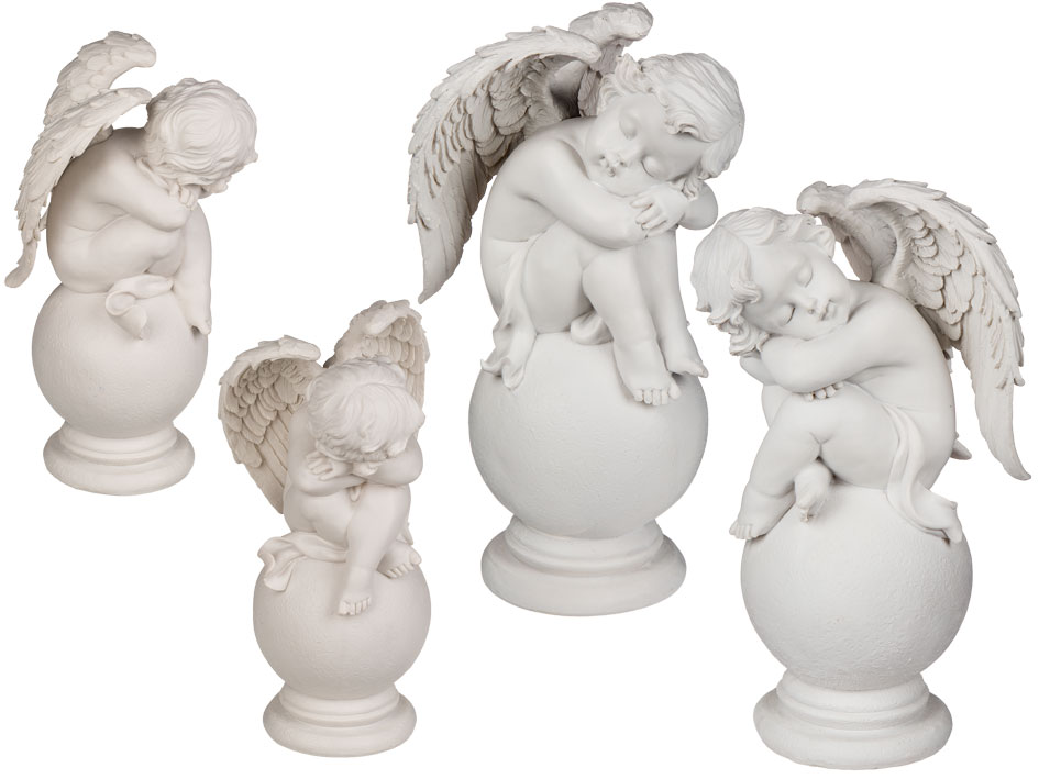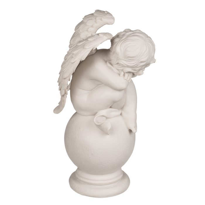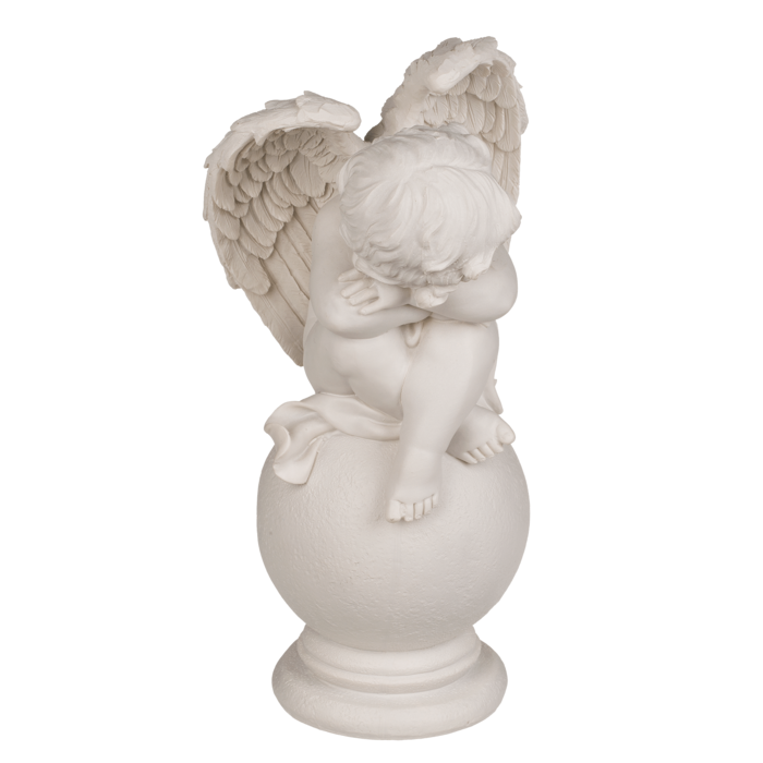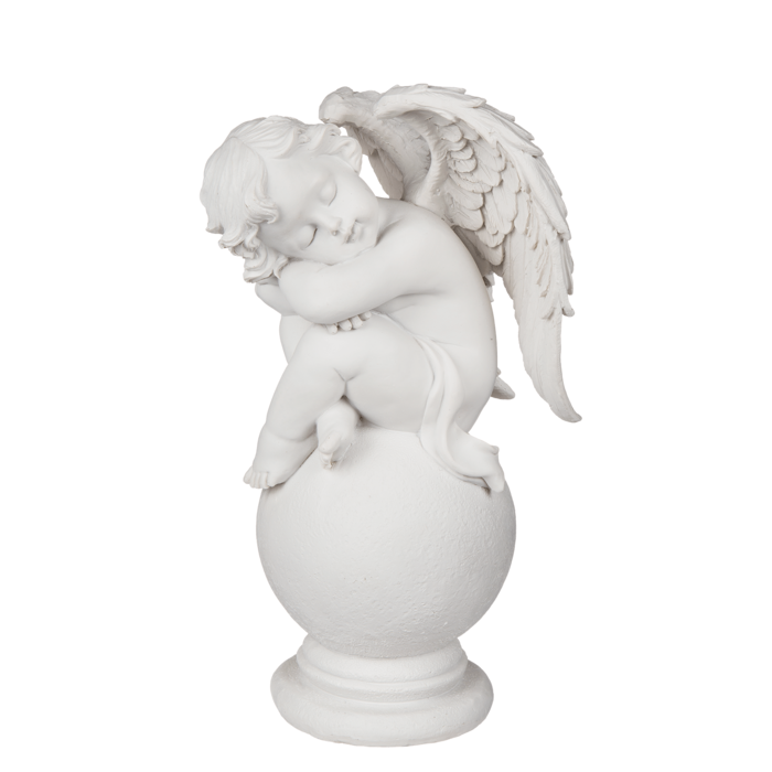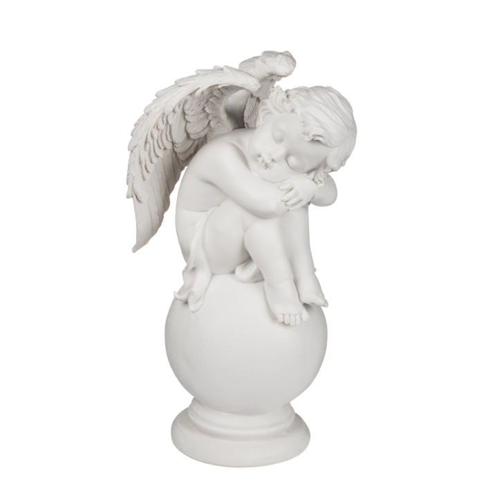 - Figur eines sitzenden oder schlafenden Engels auf einer dekorativen Kugel