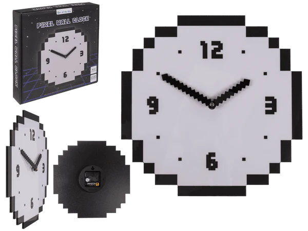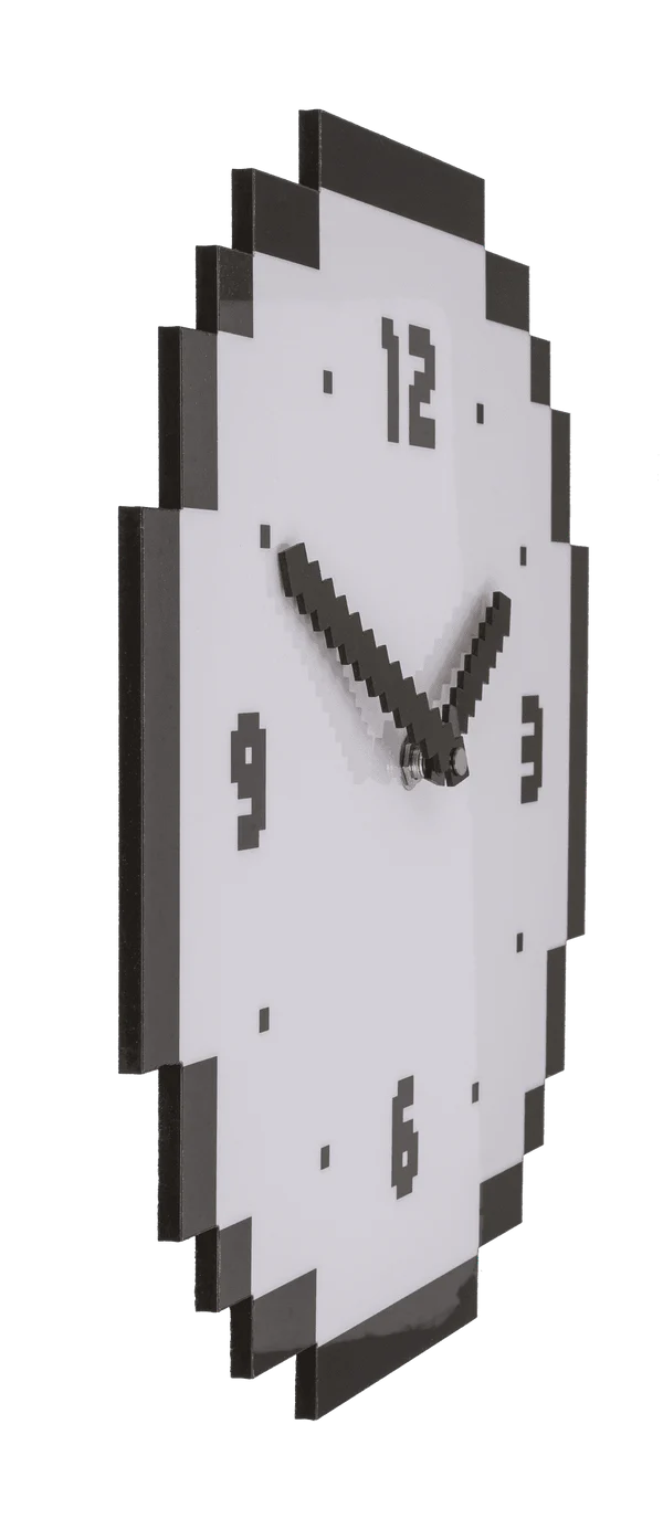 Quadratische Pixel, kontrastreiche Farben und klare Ziffern lassen die Atmosphäre klassischer Computerspiele aufkommen. Die Pixel Art Wanduhr ist ein klarer Akzent für Interieurs, die sich gerne auf Popkultur, Technik und Retro-Ästhetik beziehen. An der Wand fungiert sie als Detail, das sofort ins Auge sticht und Assoziationen zu alten Konsolen und 8-Bit-Spielen weckt.