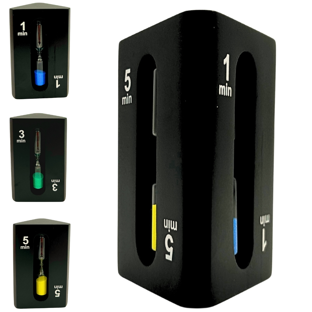 A modern háromoldalas 1-3-5 perces homokóra egy elegáns és funkcionális időzítő, amely az egyszerű kezelhetőséget és a jellegzetes designt ötvözi. Három különálló homokóra, mindegyik más-más időzítővel, egyetlen kompakt testben kapott helyet, lehetővé téve a rövid időszakaszok gyors és intuitív vezérlését elektronika használata nélkül.