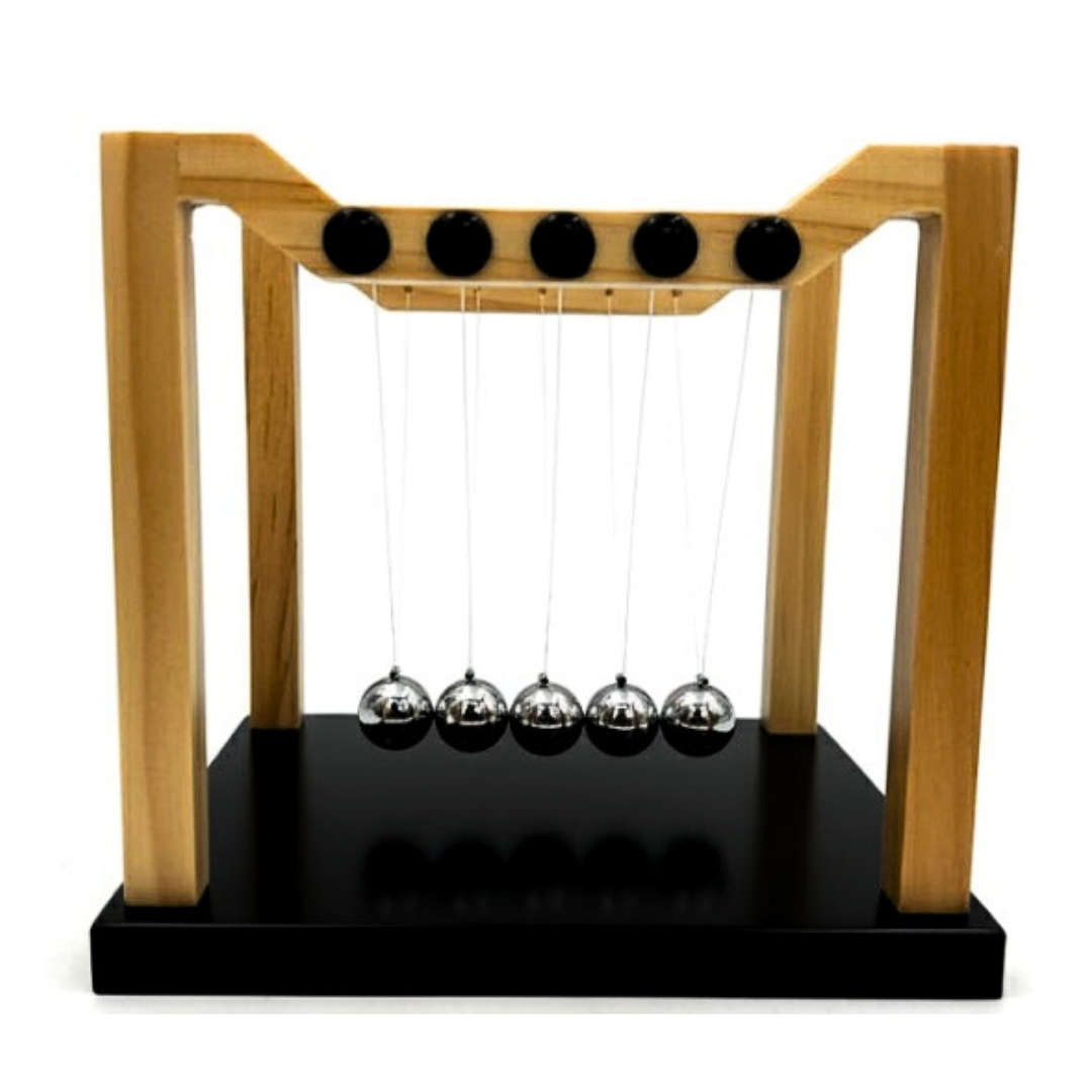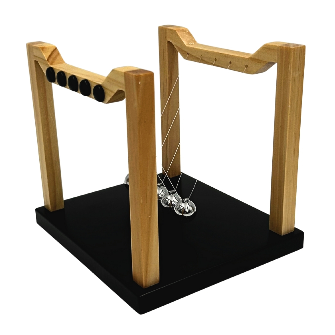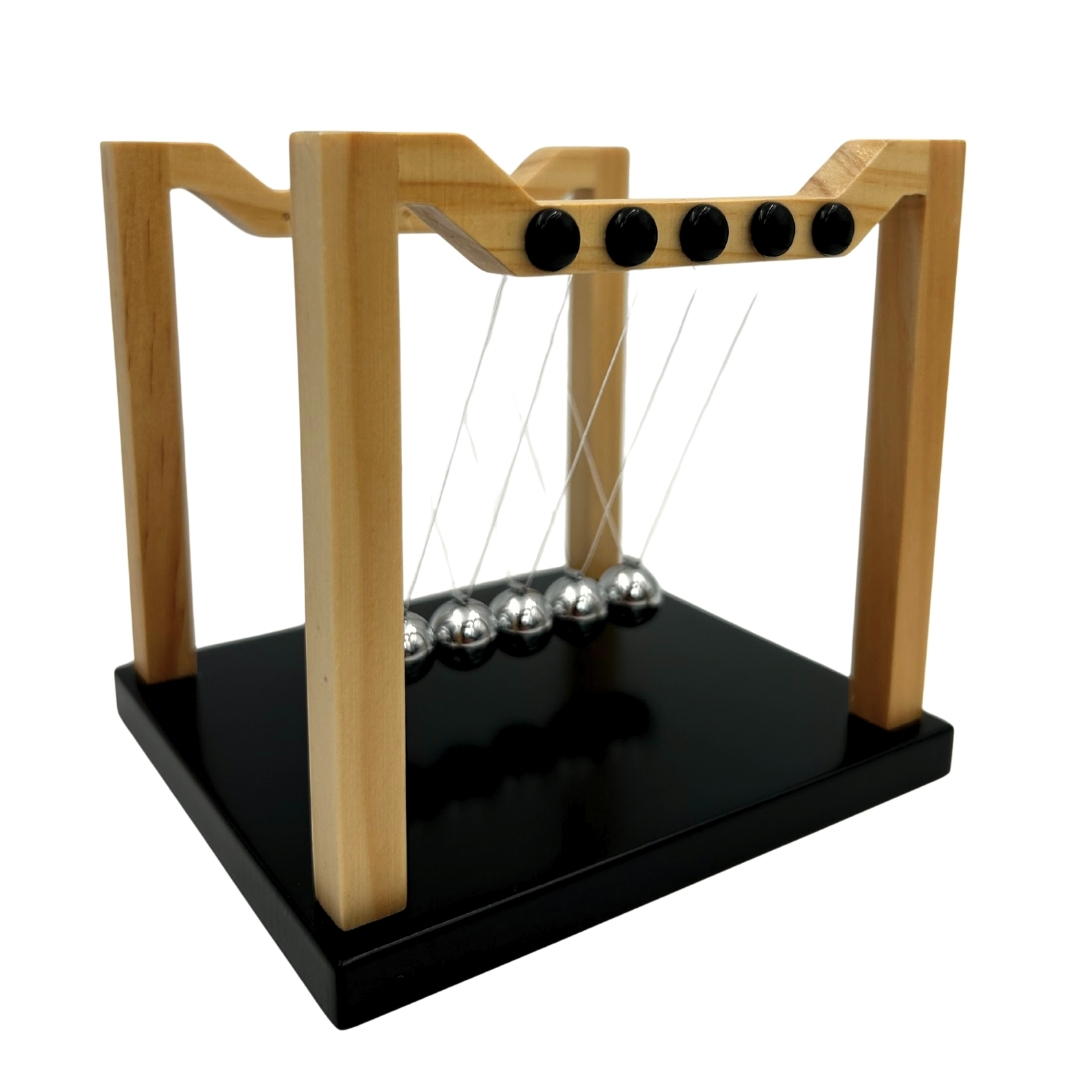 A klasszikus Newton golyók prémium változatban egy időtálló szerkentyű, amely a tudományos precizitást elegáns dizájnnal ötvözi. A tömör fa szerkezet és a tökéletesen kiegyensúlyozott acélgolyók harmonikus egészet alkotnak, amely remekül mutat az íróasztalon, a polcon vagy a dolgozószobában. Nemcsak dekoráció, hanem olyan tárgy is, amely az inga ritmikus mozgása révén nyugalmat és rendet teremt.