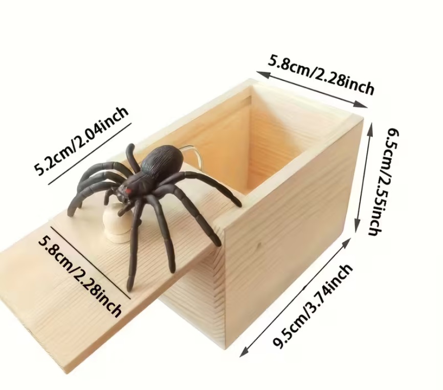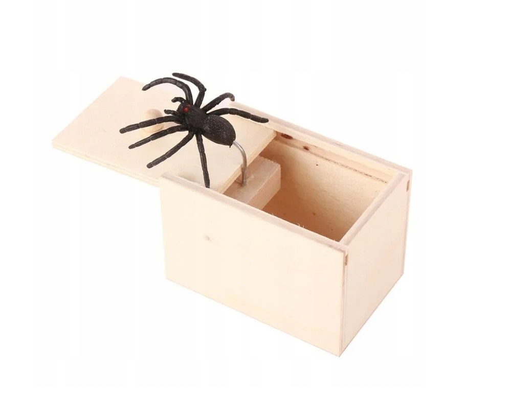 Ez a feltűnésmentes fadoboz egy rejtett pókkal egy klasszikus tréfakészítő szerkentyű, amely mindig működik. Első pillantásra úgy néz ki, mint egy közönséges, egyszerű fadoboz. A fedelet egyszerűen kinyitva azonban egy valósághűnek tűnő pók ugrik ki a belsejéből, meglepetést, nevetést és enyhe rémületet okozva.