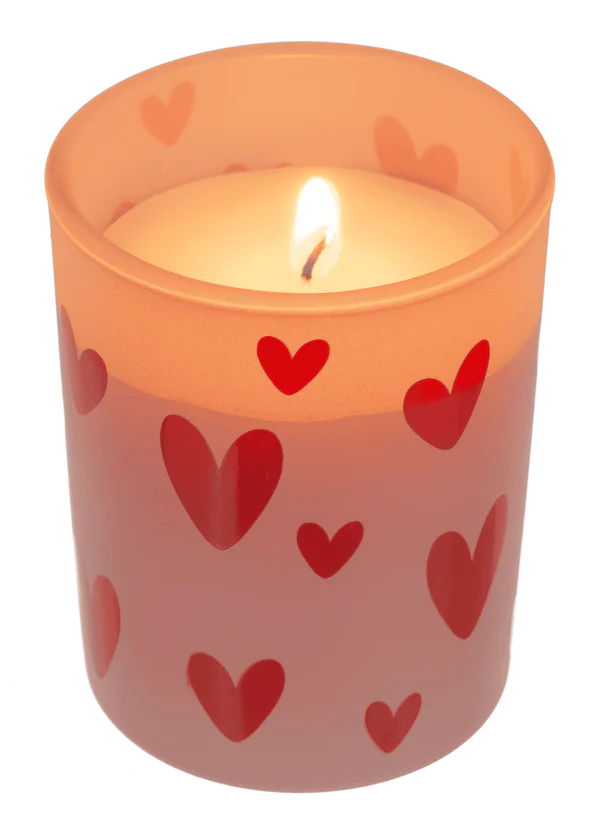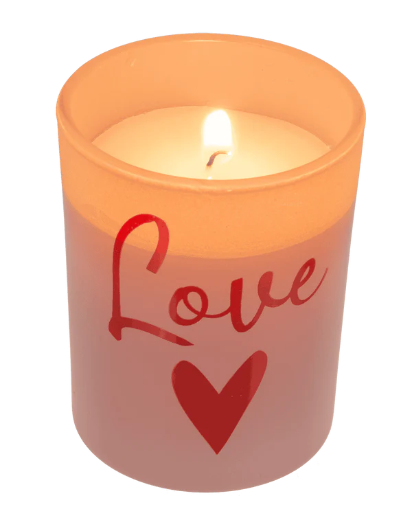Ez az üvegedényben lévő, szerelmi motívummal ellátott illatgyertya egy olyan apró elem, amely megváltoztathatja egy belső tér hangulatát. A szívek és az érzelmekkel kapcsolatos feliratok finom mintái meleg, romantikus hangulatot kölcsönöznek neki, míg a láng lágy fénye nyugalmat és otthonosságot áraszt.
