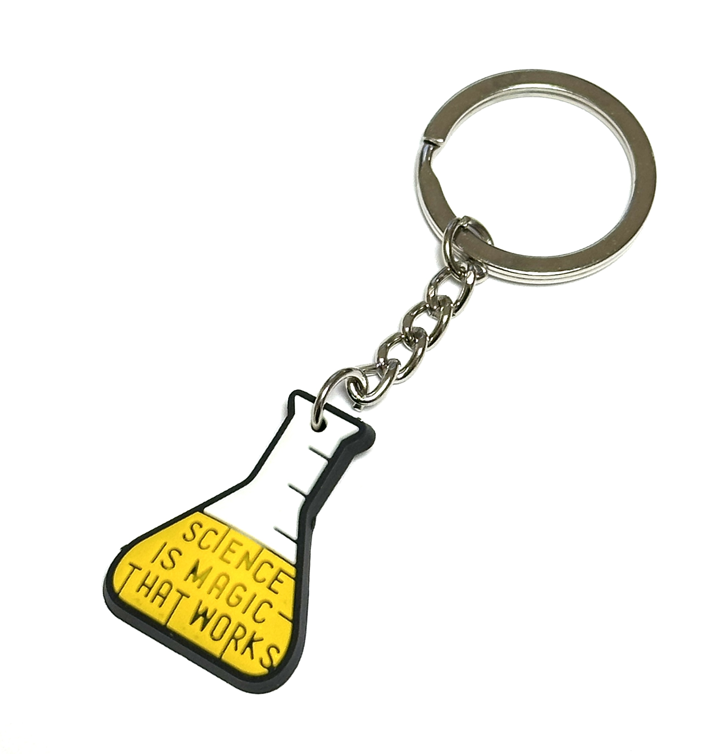 Ez a tudós kulcstartó egy laboratóriumi lombik alakjában egy kis, kifejező szerkentyű, amelyet a tudomány, a felfedezések és a kísérletezés világa ihletett. A kontrasztos töltelékkel ellátott lombik motívum szemet gyönyörködtető, és egyértelműen a tudás, a logika és a világ iránti kíváncsiság iránti szenvedélyt közvetíti. Ez a kis kiegészítő jól működik az érdeklődés és a tudományhoz való személyes hozzáállás szimbólumaként.