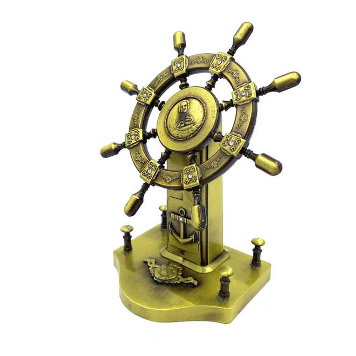 Add a touch of nautical flair to your interior with the Metal Steering Wheel on Base. This offbeat decoration is perfect for your living room, office or study, bringing a nautical touch to your space. A symbol of nautical adventures, it perfectly suits anyone who loves sailing, traveling and exploring new lands.
