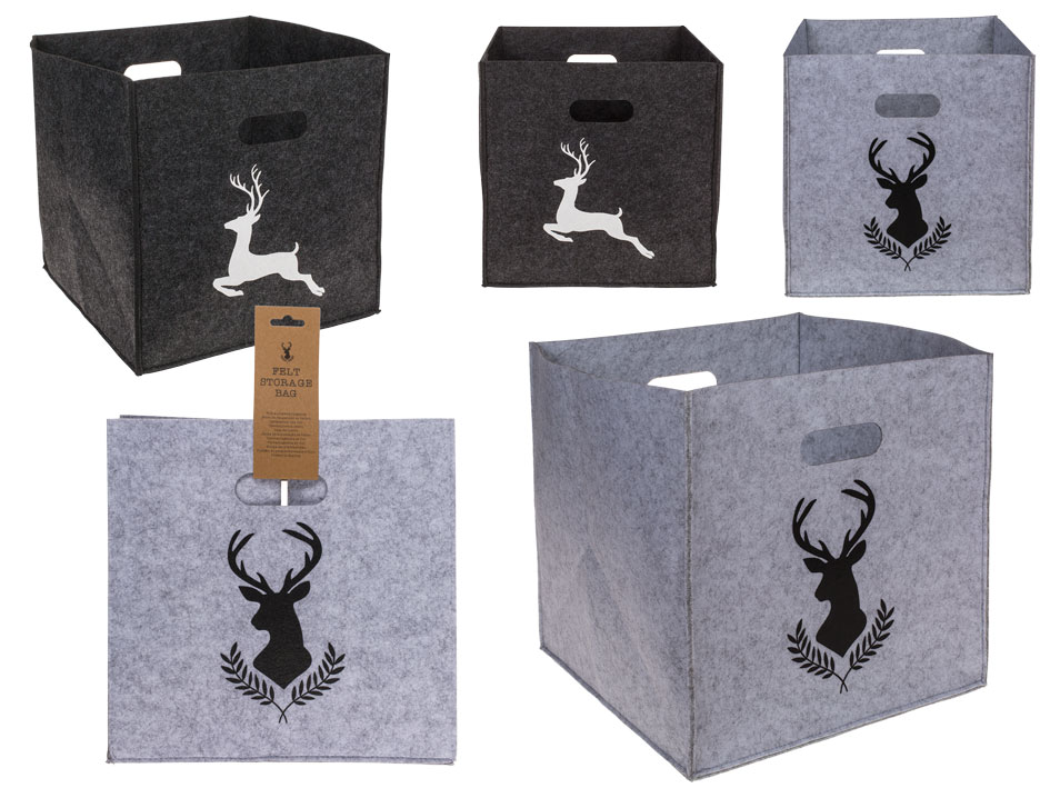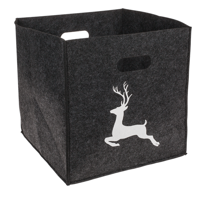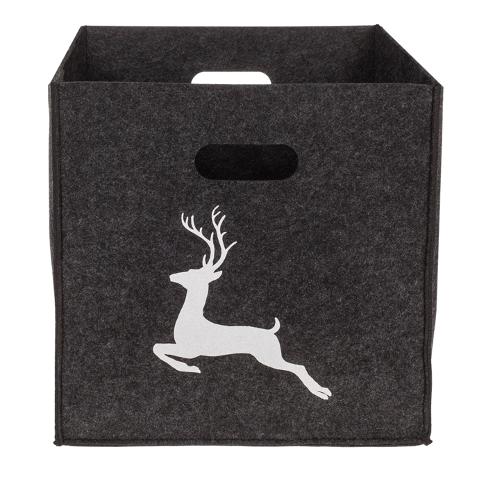 Tento praktický a elegantný úložný box z plsti s motívom jeleňa je dokonalým spôsobom, ako udržať poriadok doma alebo v obchode. Je vyrobený z hrubej a tuhej plsti a dokonale sa hodí na regály IKEA Kallax. Je k dispozícii v dvoch prevedeniach - s bežiacim jeleňom alebo s venčekovou hlavou jeleňa - a spája funkčnosť s moderným zimným dizajnom. Skvele sa hodí ako organizér, dekorácia interiéru alebo ako súčasť vianočnej výstavy. Dodáva sa ako mix dizajnov.