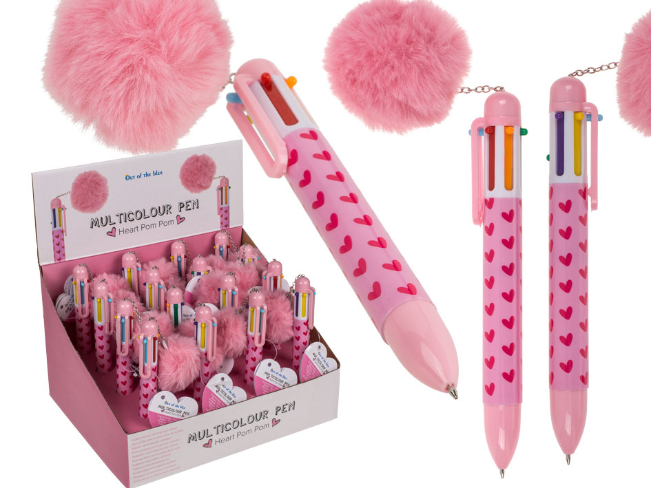 Якщо є ручка, яка здатна підняти настрій одним клацанням, то це саме вона! Ця рожева ручка у формі серця з 6 кольоровими стрижнями - абсолютний хіт для тих, хто любить поєднувати практичність з ноткою милого стилю. А на додачу до всього, м'який, пухнастий помпон-сердечко, що звисає з верхівки ручки, робить будь-який шкільний зошит, календар або парту набагато приємнішими.