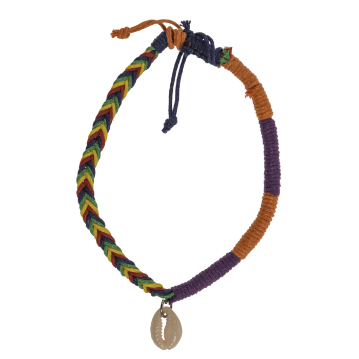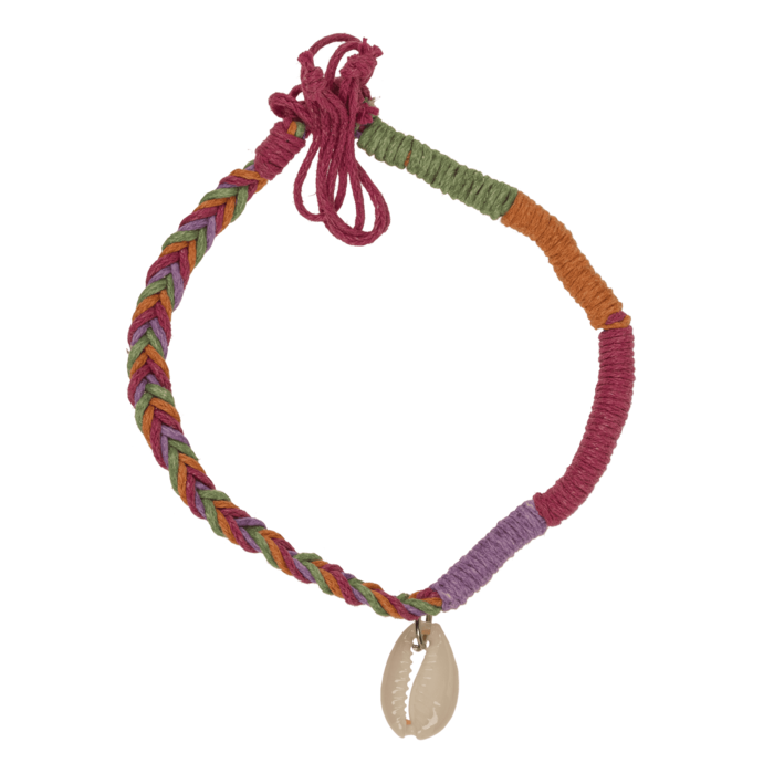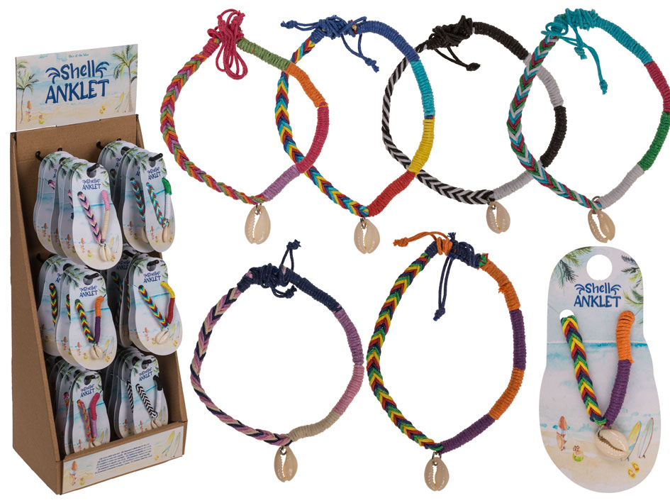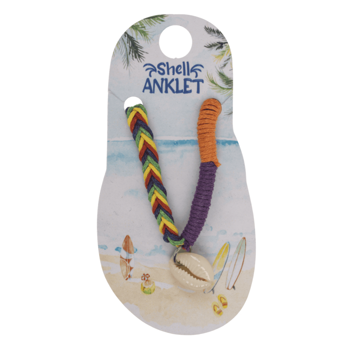Барвистий плетений браслет на щиколотку з декоративною мушлею - ідеальний аксесуар, що навіює спогади про літо, пляж і морські пригоди. Виготовлений з бавовняного шнура, легкий і зручний, він підійде як повсякденна прикраса, а також як модний гаджет для відпустки. Кожен виріб має свій унікальний характер завдяки різноманітним кольорам та візерункам.