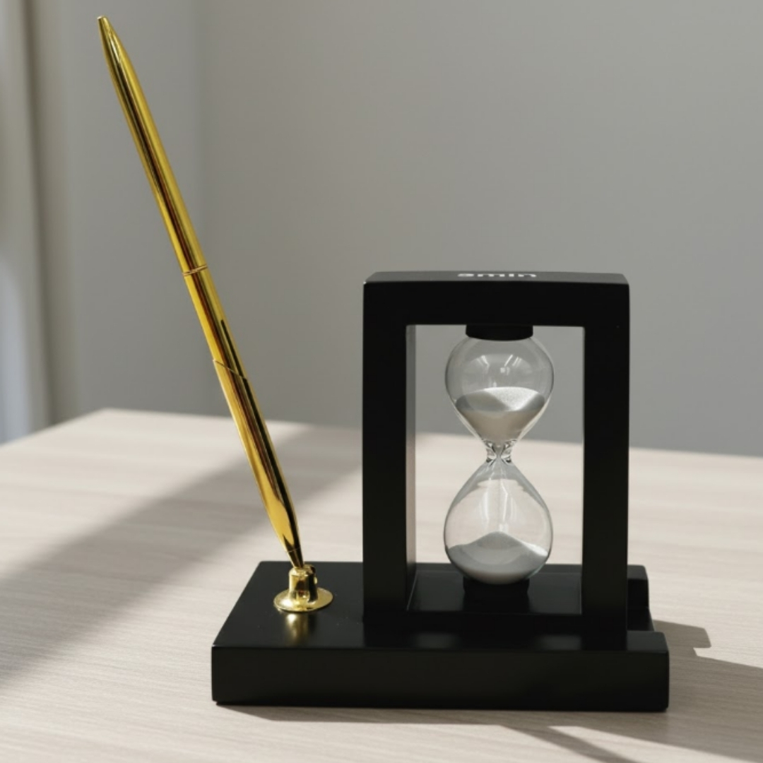 Це не звичайний офісний гаджет. Це деталь, яка підкреслює характер кабінету, офісу або домашнього кабінету. Пісочний годинник може відмічати час для коротких завдань, перерв, концентрації або розмов, а підставка підтримує порядок на робочому столі. Виріб поєднує в собі естетику та практичність - саме те, чого очікують вибагливі покупці.