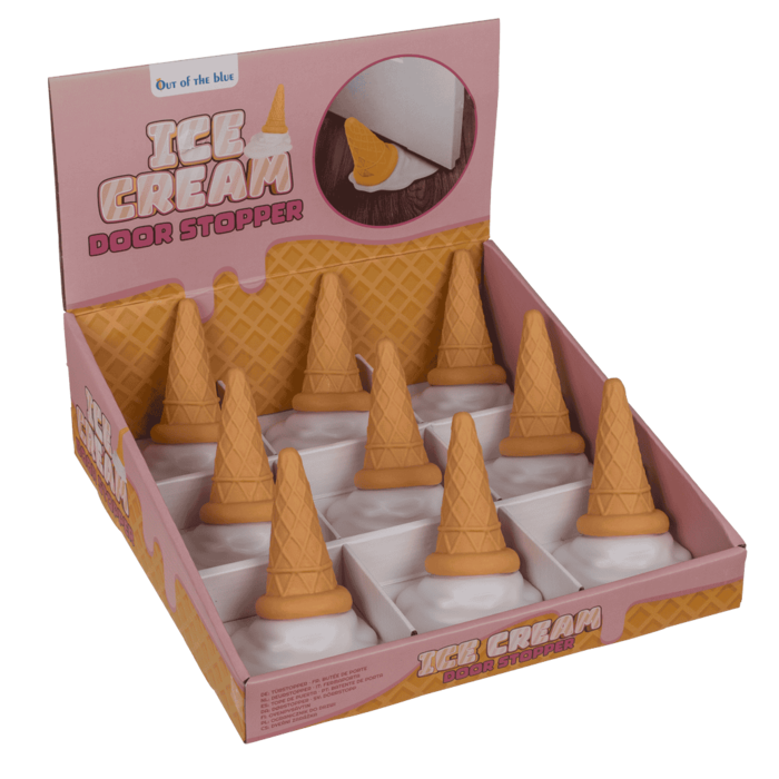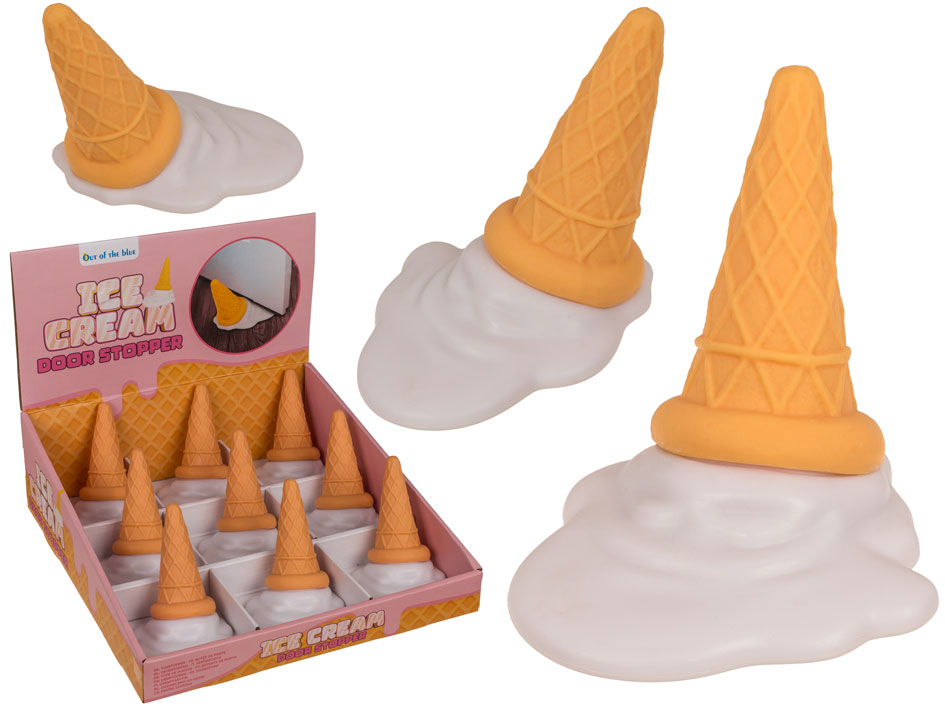 Практичний і веселий дверний клин, який виглядає як стаканчик морозива, перекинутий на підлогу. Виготовлений з гнучкого пластику, він ефективно захищає двері від випадкового зачинення. Оригінальний дизайн привертає увагу і додає інтер'єру нотку гумору. Ідеальне доповнення до офісу, дитячої кімнати або магазину - він поєднує в собі функціональність і креативний дизайн.