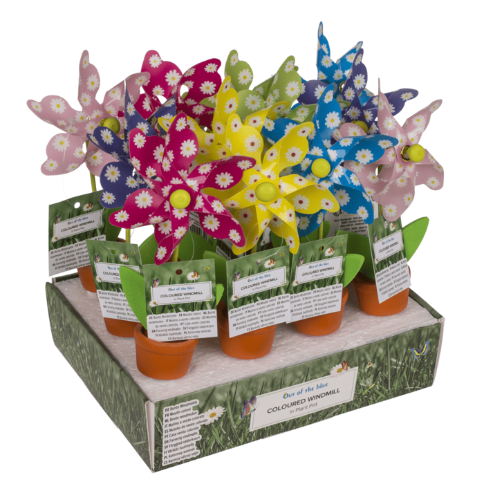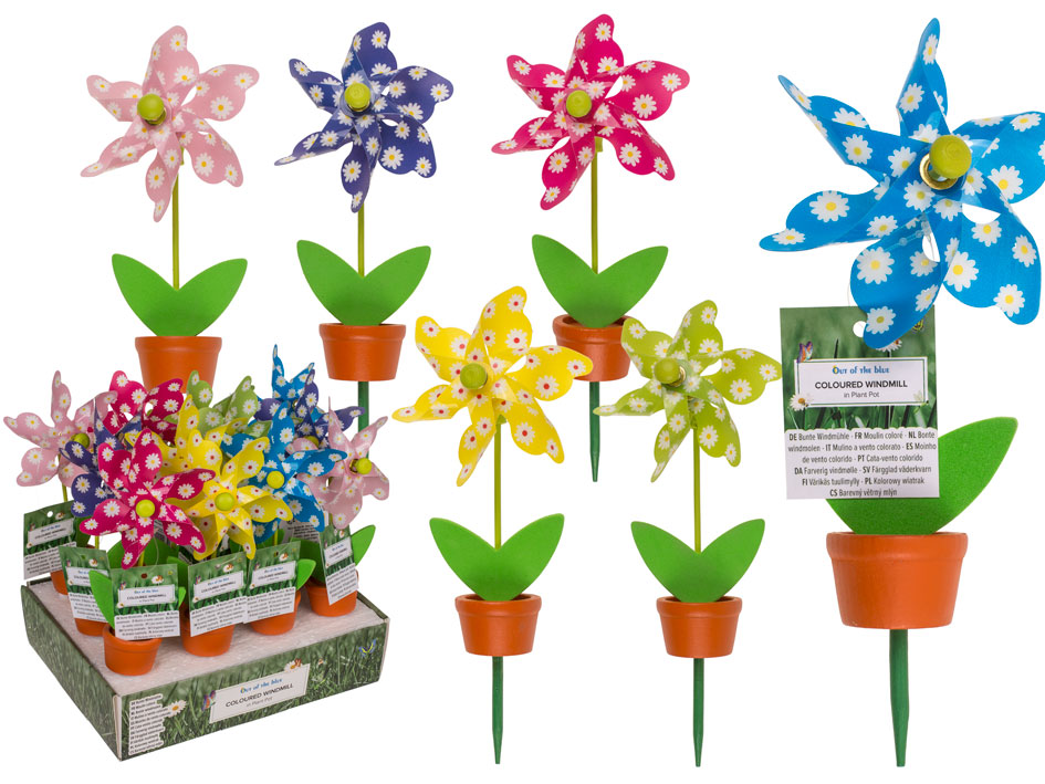 - Кольорова дзиґа у вазоні з дерев'яною паличкою