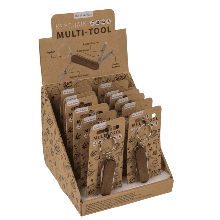 Практичний та елегантний брелок, який поєднує в собі функціональність кишенькового ножа та стильний вигляд завдяки дерев'яним боковинам. Це невеликий, але дуже корисний гаджет - завжди під рукою, готовий допомогти вам у повсякденних ситуаціях. Якщо вам потрібно відкрити пляшку, відрізати нитку або зробити невеликий ремонт, цей мультитул впорається з цим завданням на відмінно.