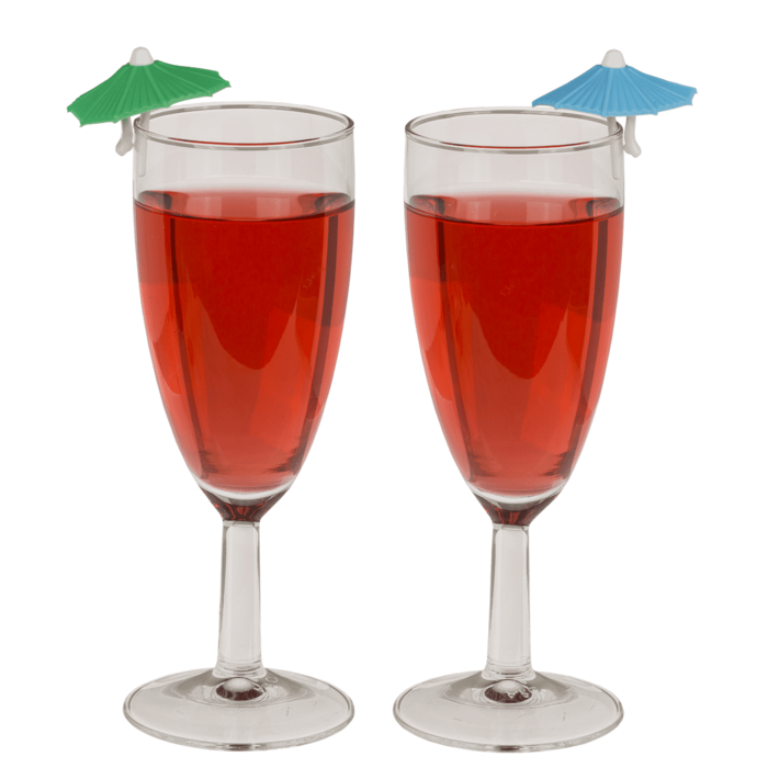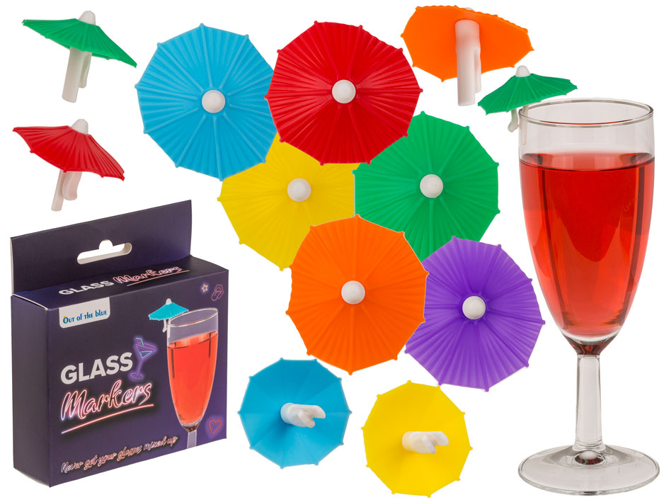 Вечірка, напої, кілька келихів на столі... і класичне питання "це мій?". З цими кольоровими силіконовими парасольками ви більше ніколи не переплутаєте свій напій. Кожен маркер зручно кріпиться до краю келиха і діє як маленький прапорець вечірки, даючи всім зрозуміти: цей келих належить мені. Насичені кольори, легка форма та практичний дизайн роблять парасольки схожими на мініатюрні версії парасольок для тропічних напоїв, але набагато довговічніші.