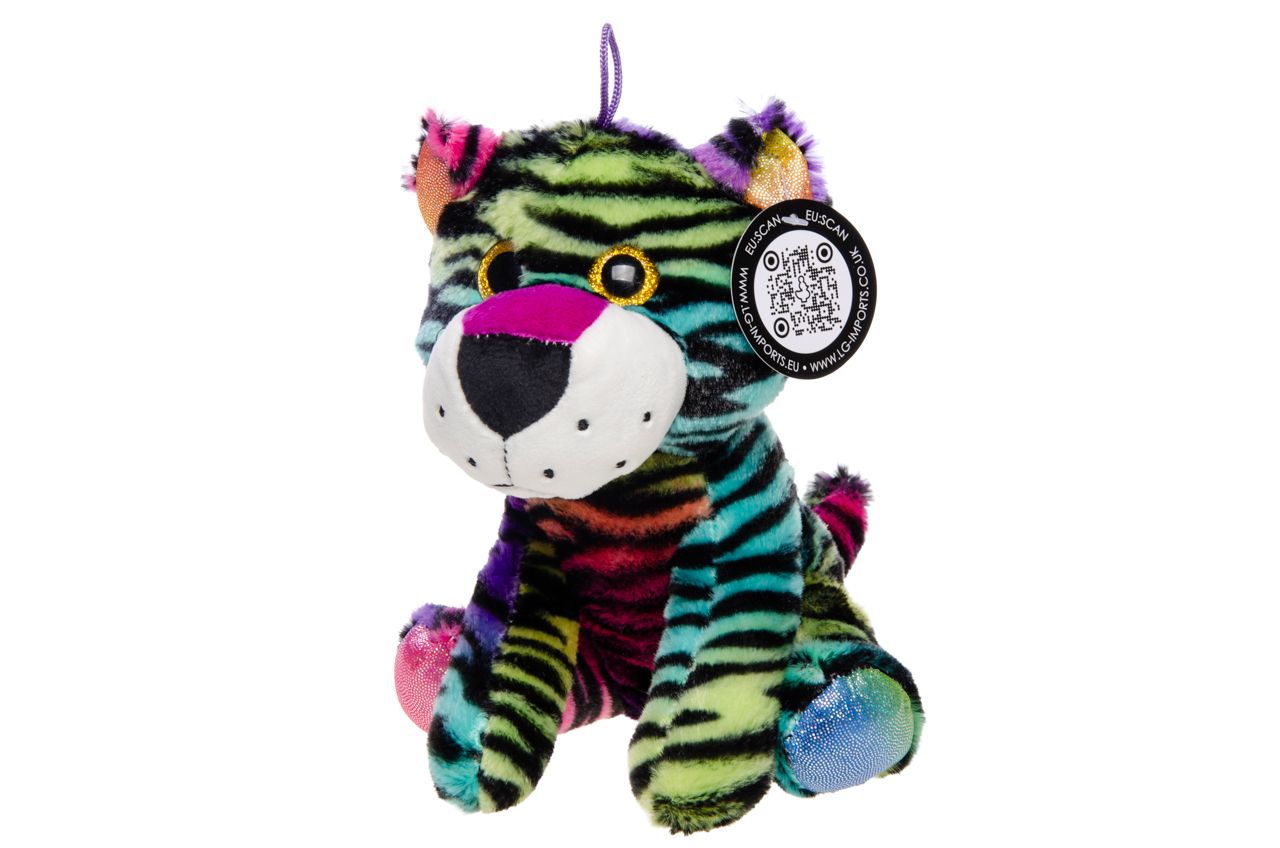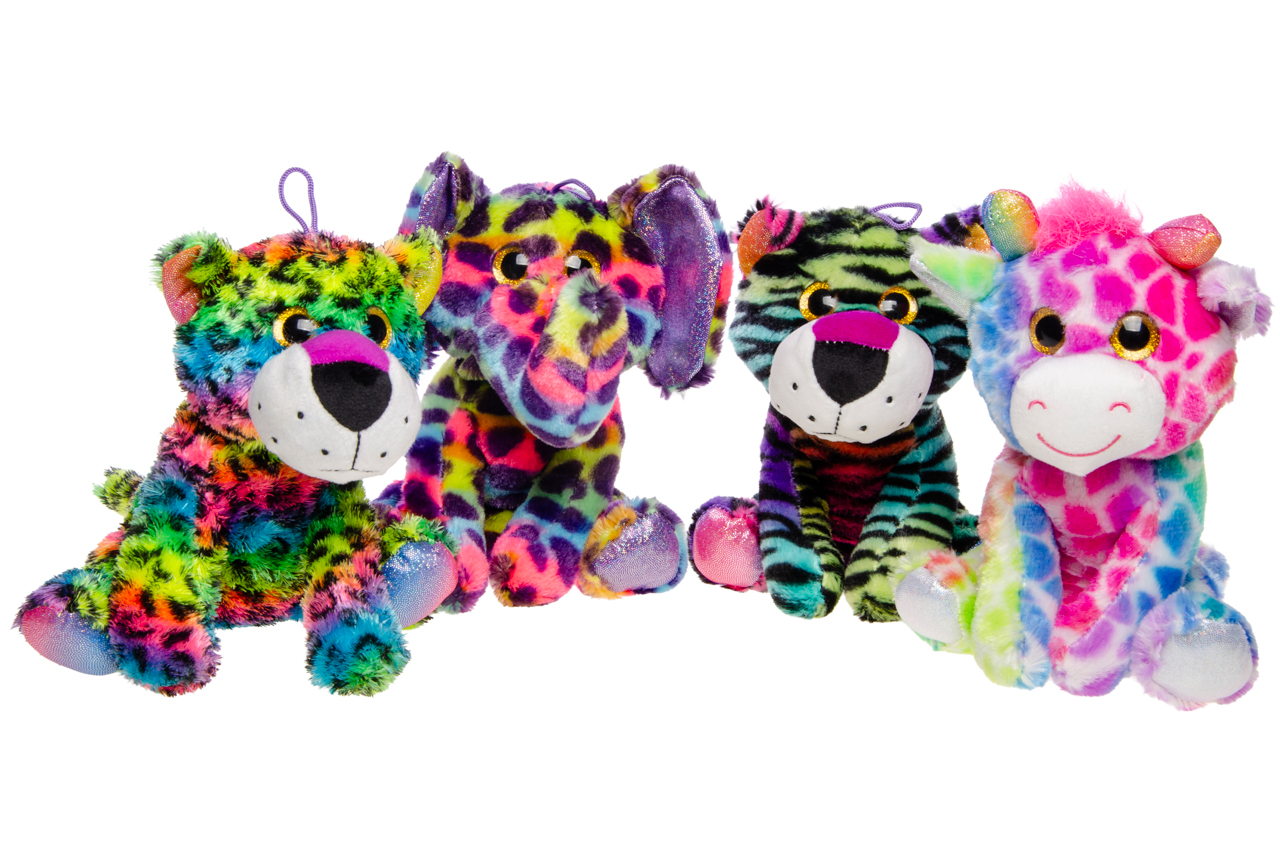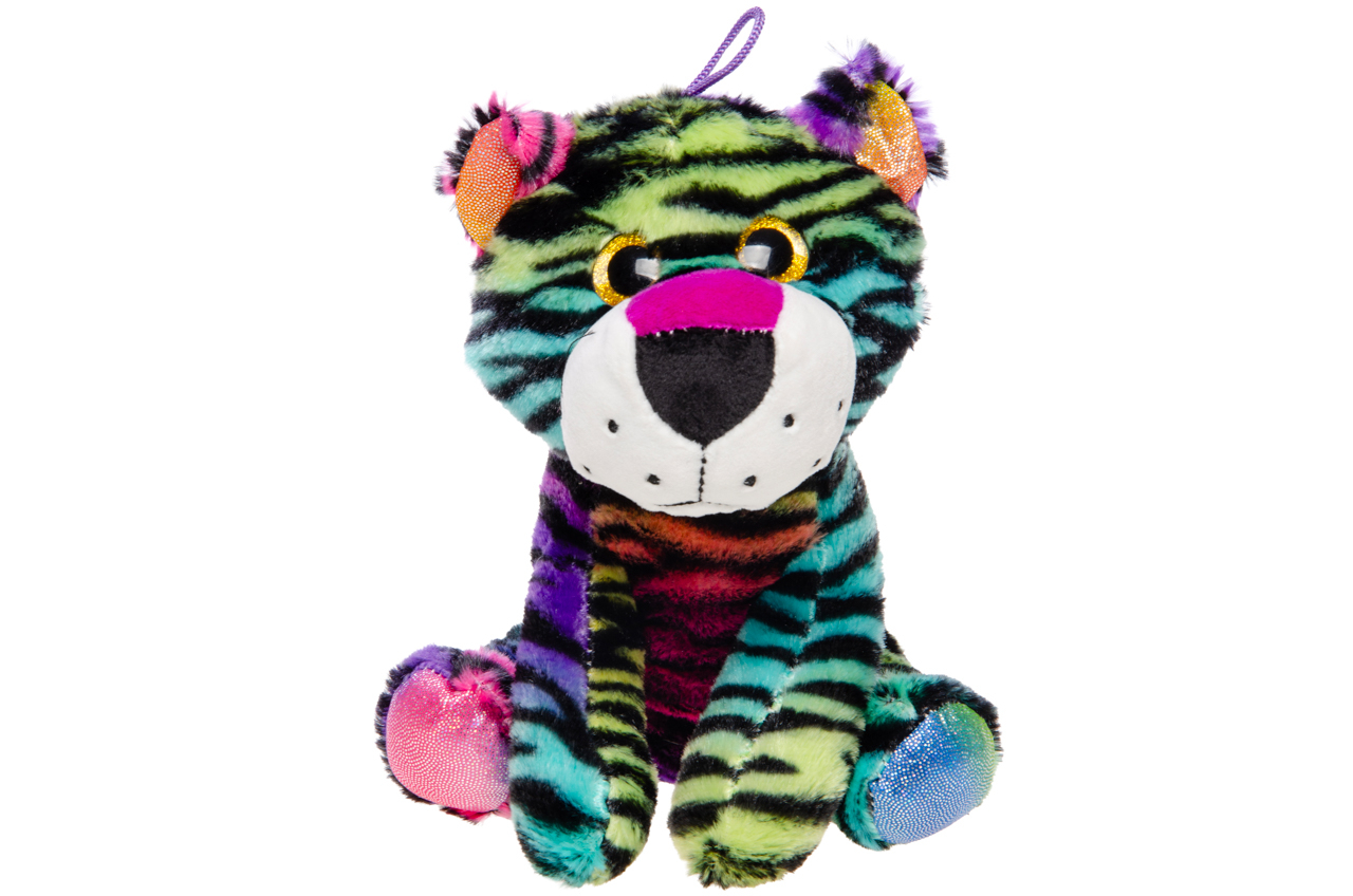 Цей унікальний плюш - справжній вибух кольору! Виготовлений з м'якого плюшу веселкових відтінків, він схожий на дику тварину прямо з казки. Його золотисті очі додають йому чарівності, а м'яке хутро викликає бажання обійняти його. Плюш доступний у різних варіантах - кожен виріб однаково яскравий та унікальний, що робить його ідеальним подарунком або прикрасою для кімнати.