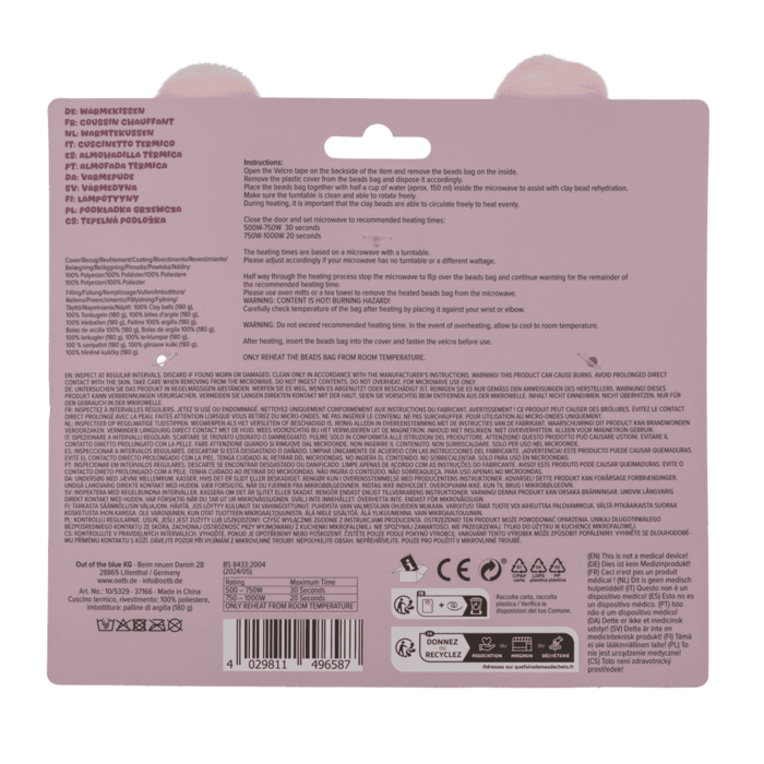 Увага! Регулярно перевіряйте. Зніміть, якщо зношені або пошкоджені! Чистити тільки відповідно до інструкцій виробника. Цей продукт може спричинити опіки. Уникайте тривалого прямого контакту зі шкірою. Будьте обережні, виймаючи з мікрохвильової печі. Не їжте вміст. Не перегрівати. Тільки для використання в мікрохвильовій печі.