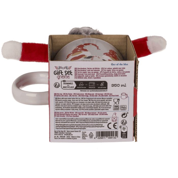 Різдво пахне пряниками, ялинкою і... гарячим чаєм у чашці, яка сама по собі є подарунком! Цей чарівний набір складається з керамічного горнятка з принтом різдвяного гнома та плюшевого гнома, який виглядає з нього, наче охоронець святкової атмосфери. Це поєднання практичної посудини та декоративного гаджета, яке викличе посмішку на обличчі будь-якого одержувача. Ідеально підходить для подарунка від Діда Мороза, корпоративного подарунка або доповнення до різдвяного кошика, повного смаколиків. Об'єм горнятка 350 мл - саме те, що треба для какао, чаю або глінтвейну зимовими вечорами.