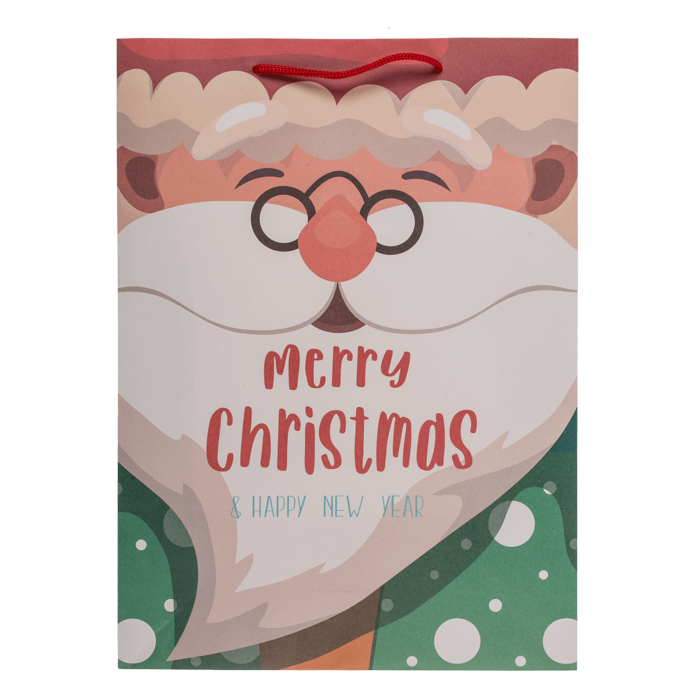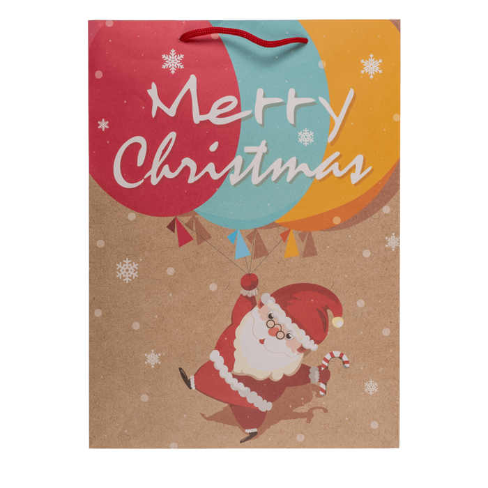 Барвистий паперовий подарунковий пакет - ідеальний спосіб елегантно та весело загорнути ваші різдвяні подарунки. Виготовлений з міцного крафт-паперу та прикрашений барвистими ілюстраціями Санта-Клауса і зимової тематики, він додасть унікального штриху будь-якому подарунку. Тепла, дружня графіка та зручні ручки на мотузці роблять пакет не лише практичним, але й естетичним. Ідеально підходить для пакування корпоративних подарунків, святкових смаколиків та дрібничок для близьких.