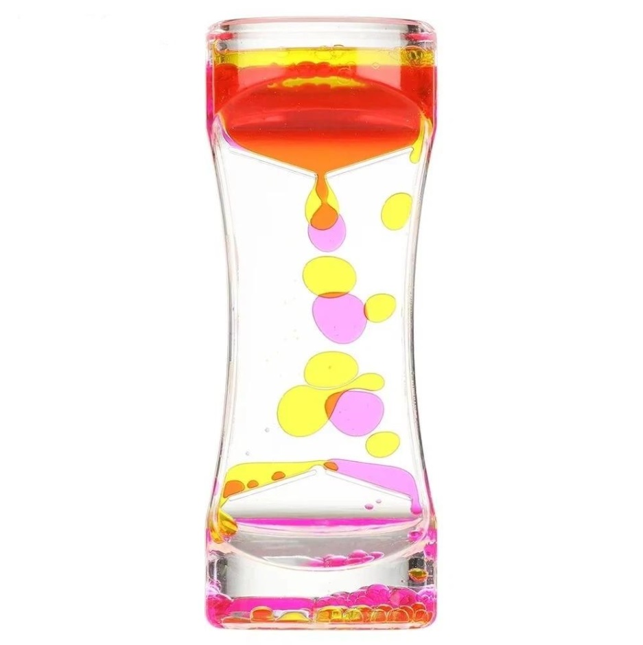 Гелевий релаксер Hourglass у рожево-жовтому кольорі - це яскравий релаксаційний пристрій, який привертає увагу динамічним, але заспокійливим рухом падаючих крапель. Контрастні кольори створюють яскравий, зачаровуючий візуальний ефект, який допомагає відволіктися від повсякденних обов'язків і напруги.