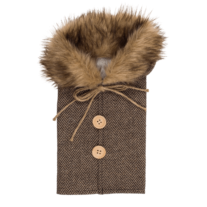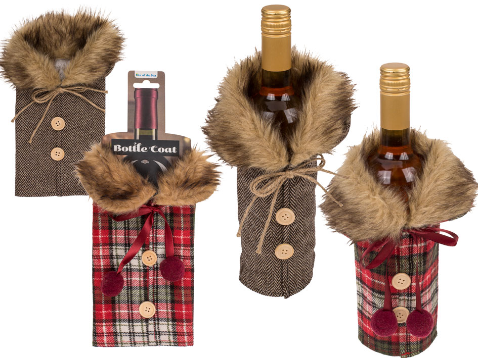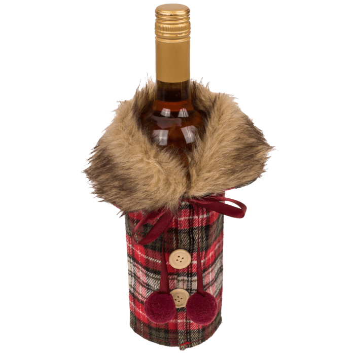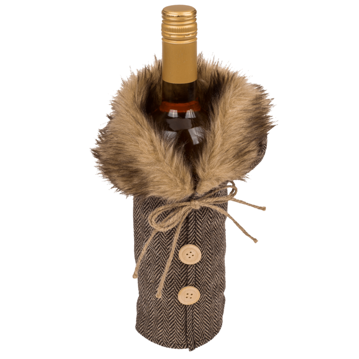 Елегантна сукня з пляшки з хутряним коміром - ідеальний спосіб додати нотку гумору і тепла у ваші різдвяні прикраси. Замість звичайної пляшки - стильний зимовий акцент! Виготовлена з м'якого матеріалу з пухнастим коміром, ця сукня робить вино або шампанське особливо ефектним. Це ідеальний подарунковий аксесуар, прикраса столу або оригінальний елемент дизайну в ресторані чи готелі. Доступний у двох святкових дизайнах.