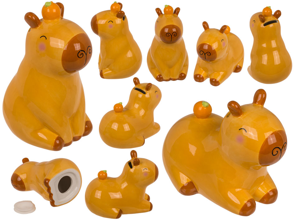 Не кожна скарбничка може змусити вас почервоніти так, як ця! Капібара з апельсином на голові - мила фігурка з доломіту, яка не лише зберігатиме ваші дрібниці, але й додасть шарму будь-якому інтер'єру. Її спокійна посмішка та привітна поза мають розслаблюючий ефект - ідеальний гаджет для тих, хто любить незвичайні прикраси та хоче відкладати гроші з посмішкою. Капібара доводить, що заощаджувати гроші - це зовсім не нудно!