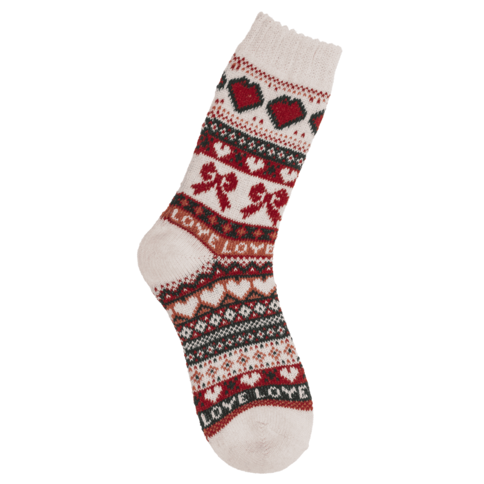 Товсті, м'які шкарпетки зі святковим візерунком - це не лише захист від холоду, а й унікальний аксесуар, що дарує затишний настрій у холодні дні. Мотиви сердечок, бантиків та геометричних смужок надають їм стильного зимового відтінку. Виготовлені з м'якої суміші волокон з додаванням вовни, вони теплі, еластичні та надзвичайно приємні на дотик. Вони ідеально підходять як для повсякденного носіння, так і для подарунка коханій людині.