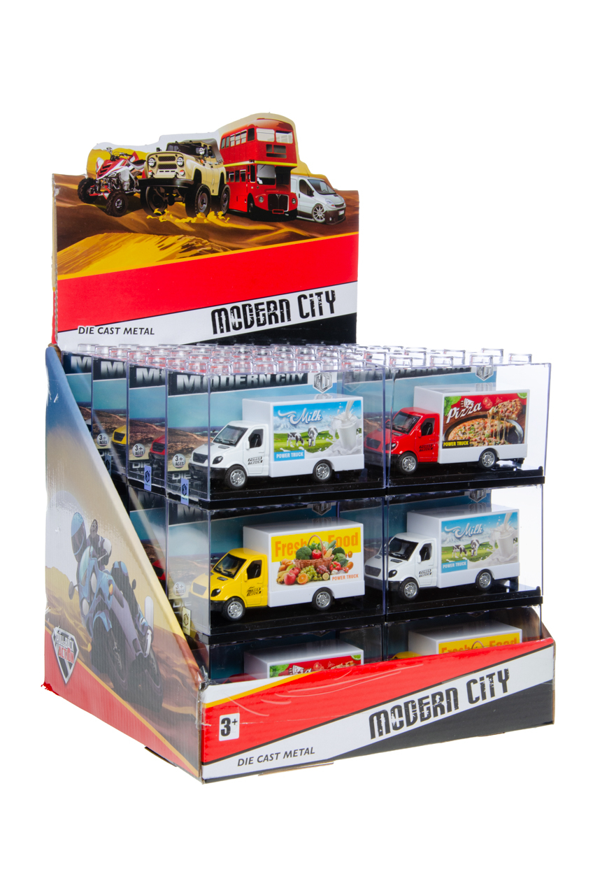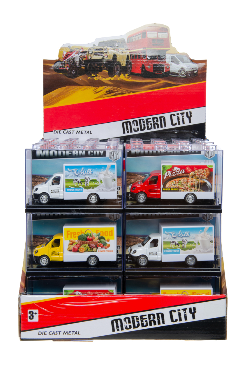 Мініатюрна вантажівка доставки з металевим кузовом - чудовий гаджет для будь-якого маленького автолюбителя. Кожна модель зображує різний транспортний засіб з міського автопарку - від доставки молока, перевезення свіжих продуктів до популярного фургона з піцою! Завдяки приводу, що від ' їжджає назад, просто потягніть машину назад і відпустіть, щоб вона поїхала вперед, набираючи обертів. Якісна робота та реалістичні принти роблять його не лише іграшкою, а й привабливою колекційною мініатюрою.