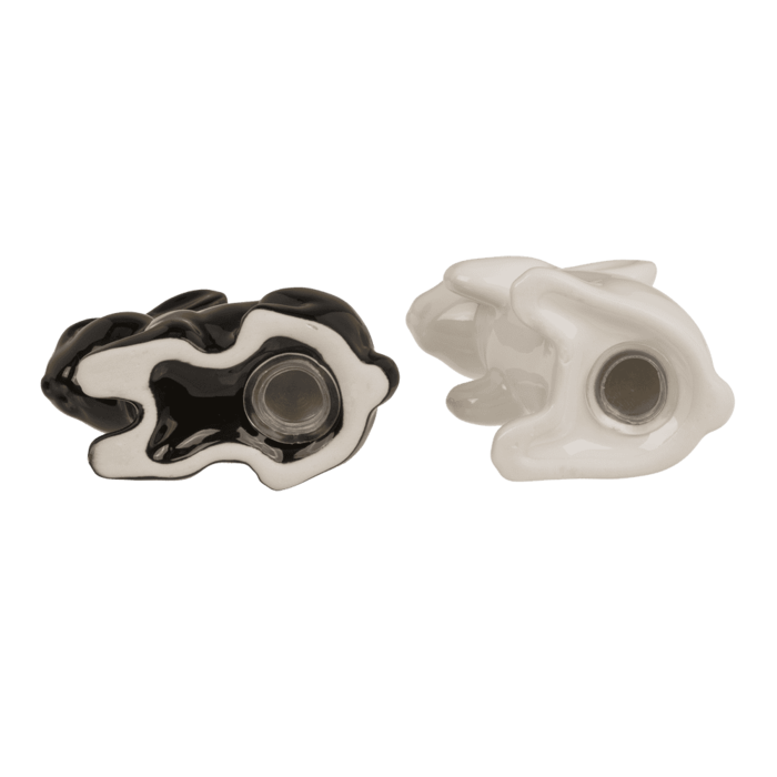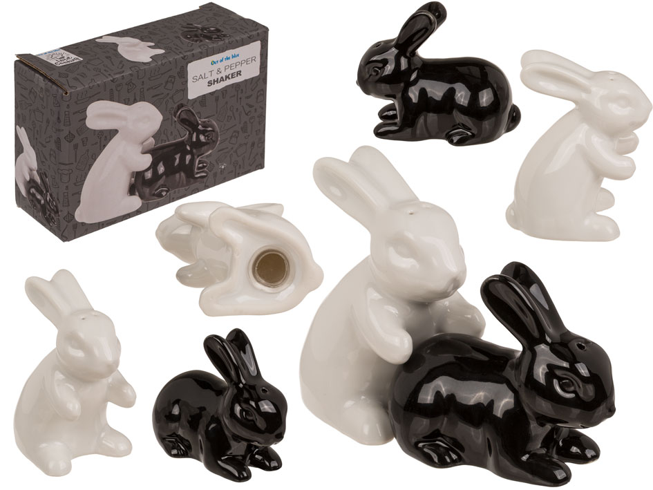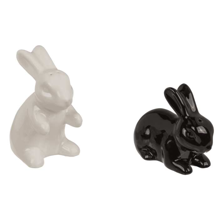 Добре відомо, що кролики славляться своєю великою... життєрадісністю! Цей незвичайний набір для солі та перцю у формі чорно-білого кролика не залишить байдужими нікого за столом. Поставлені разом, вони виглядають як пара, що перебуває в дуже близьких стосунках, що одразу викликає посмішку на обличчях ваших гостей. Це практичний кухонний девайс, який одночасно є і веселою прикрасою, і чудовою темою для розмови. Готуєте вечерю? Ці кролики подбають про те, щоб атмосфера була безтурботною та сповненою сміху!